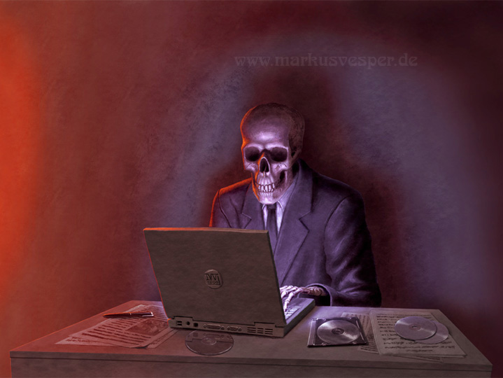 "Uploading Death Downloading Destruction", 2008, (Illustration für ein Album der Band Evacuate) Acryl auf Aquarellkarton,