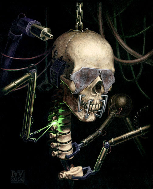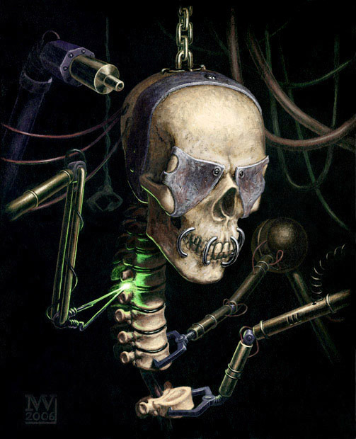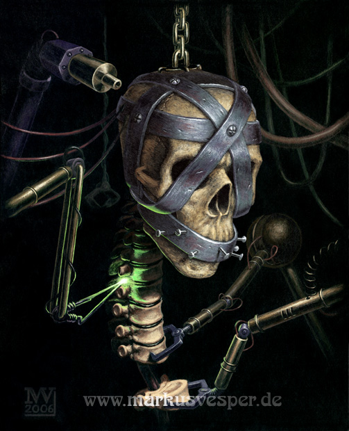 Für die folgenden Versionen habe ich verschiedene Schädel separat gemalt und im Computer ins Bild eingefügt.