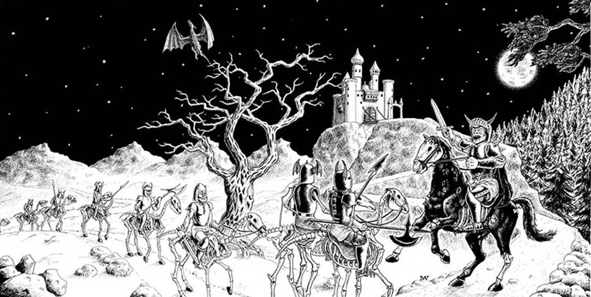 Cover für eine Single der Band RITUAL STEEL (nach einer Idee der Band), 2002, Tinte auf Papier, 60cm x 30cm