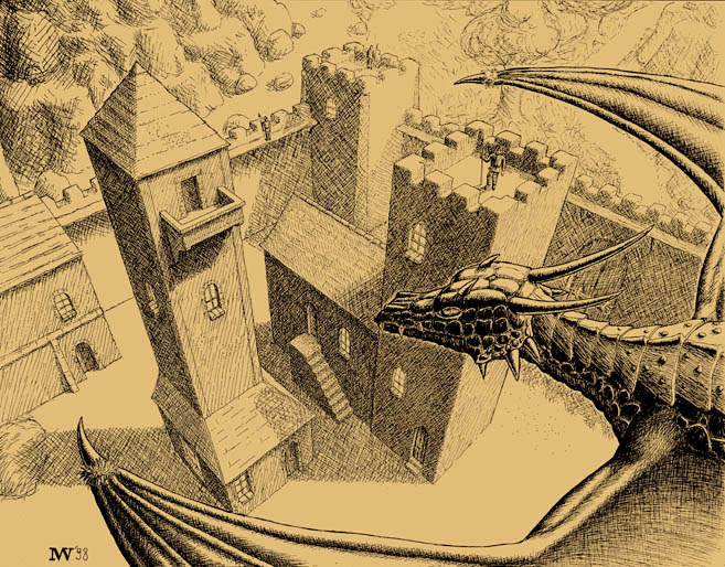 "Drachenflug", 1998, Tinte auf farbigem Karton, 42cm x 30cm
