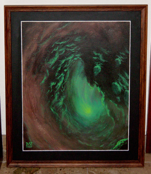 "Kosmisches Licht", 2008, Acryl auf Leinwandplatte, gerahmt, ca.53cm x 63cm (Bild: 40cm x 50cm)