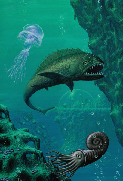 "Unterwasserstadt", (seidenmattes 250 g/qm Papier) Offset-Druck, ca. 38cm x 54cm