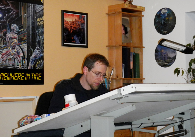Seit 2006 bin ich außerdem hauptberuflich als selbstständiger Künstler/Illustrator tätig und habe auch bereits zahlreiche internationale CD-/LP-Cover, sowie einige Buchumschlagsbilder veröffentlicht. Neben den Auftragsarbeiten (die seit 2010 aus Gründen der Zeitersparnis überwiegend digital auf einem Grafiktablett gemalt werden, jedoch auch ein gänzlich anderes Aufgabenspektrum wie z.B. Wandgemälde zur Raum- oder Fassadengestaltung einschließen) konzentriere ich mich jedoch weiterhin auf die Acrylmalerei und die Verwirklichung eigener Ideen, die meine eigentliche Leidenschaft darstellen.
