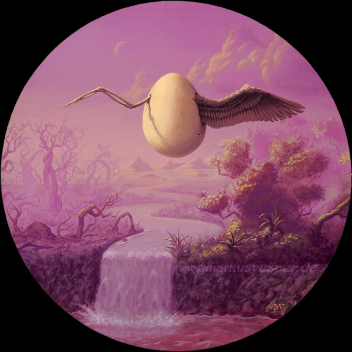 "Birth of Life and Death", 2014, acrylics on round medium density fibreboard, 50cm in diameter